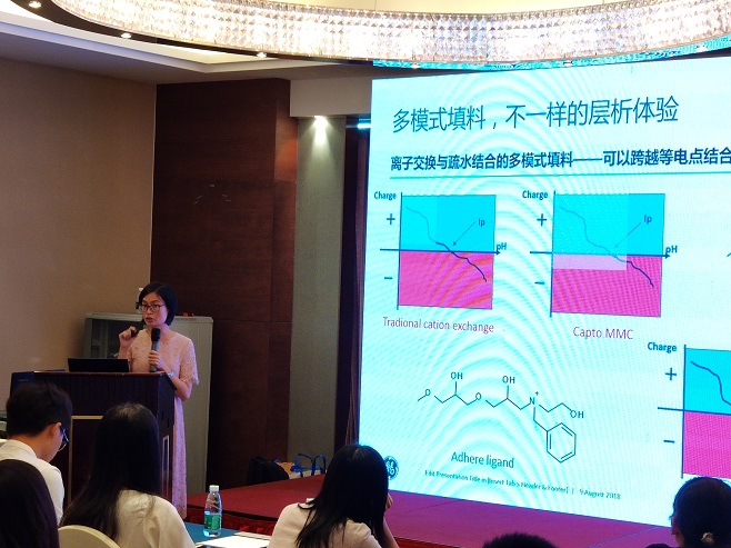 GE公司资深产品专家陈卓对“新一代层析填料及热点应用”进行主题演讲
