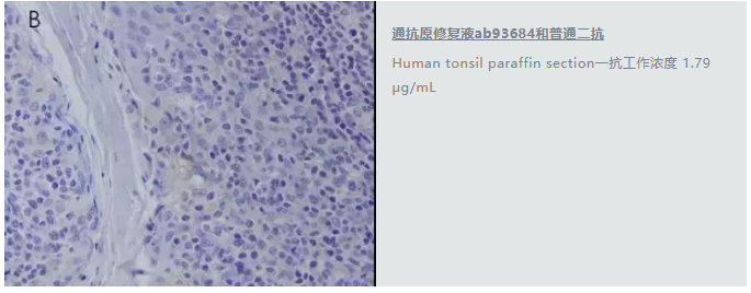 pH值敏感的抗原会随着pH值的变化而失去,导致最后结果信号很弱。而这款抗原修复液能够在高温高压下保持pH值的稳定,最大程度修复抗原暴露表位,保证了抗体与样本的结合水平。相较于普通的柠檬酸盐或EDTA碱性修复液,使用这款抗原修复液,可以在抗体总量降低2-3倍时,仍然得到理想的染色结果。