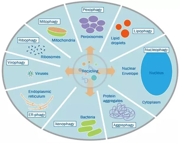 自噬可能通过多种或某一选择性机制发生。选择性自噬通路的命名是基于靶向降解的分子类型