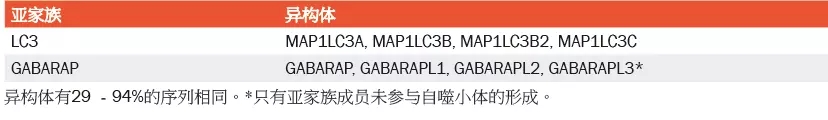 在哺乳动物中,已经发现了多个LC3家族成员,它们属于两个主要亚家族,LC3和GABARAP。不同的异构体在选择性自噬中可发挥特殊的作用。