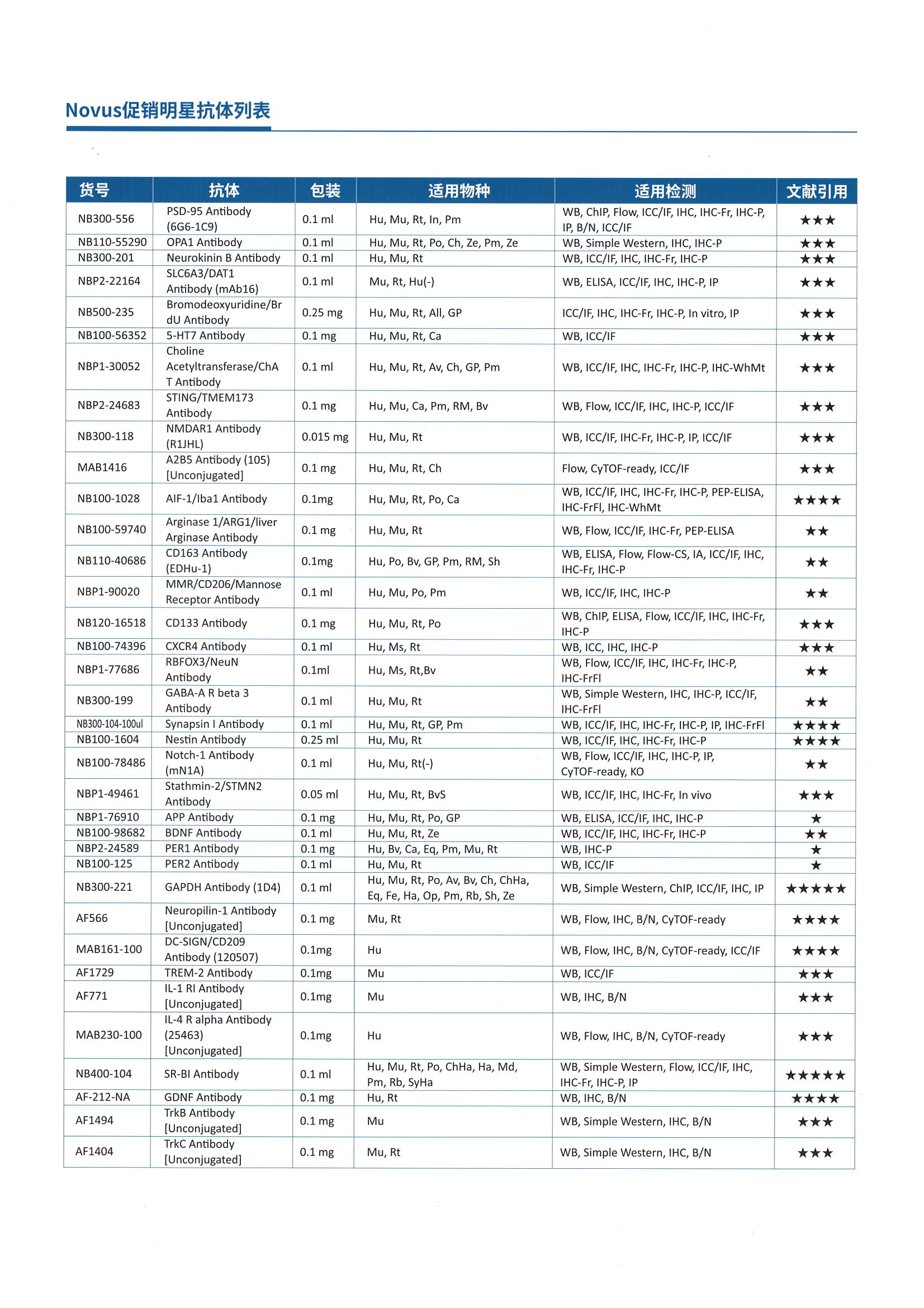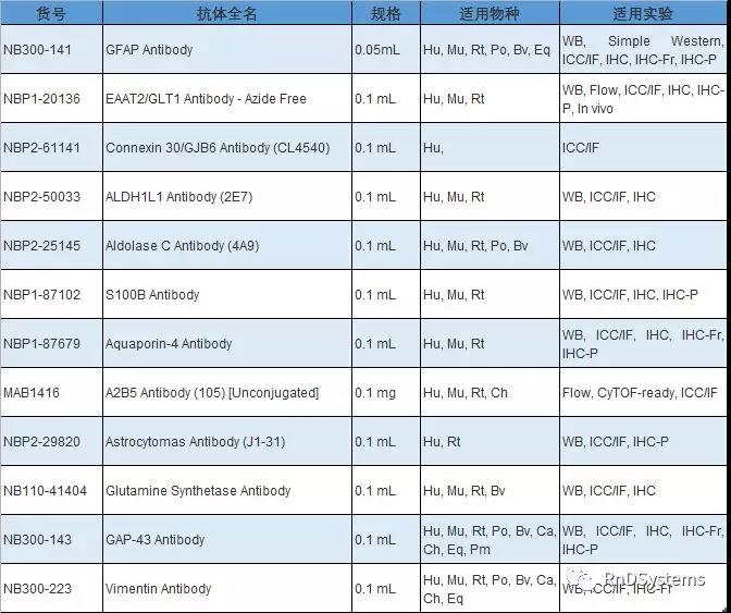 以下为我们推荐的研究星形胶质细胞抗体列表