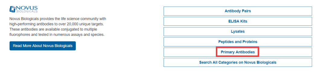 这里以 Novus Biologicals® 品牌产品为例,点击「Primary Antibodies」