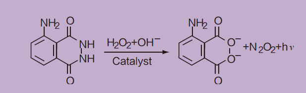 常见的化学发光组合是鲁米诺(3-aminophthal hydrazide, Luminol)底物与辣根过氧化物酶反应。鲁米诺于 1928 年首次被合成为化学发光底物,该底物的发光反应需要苛刻的条件,发光暗淡且持续时间短。
