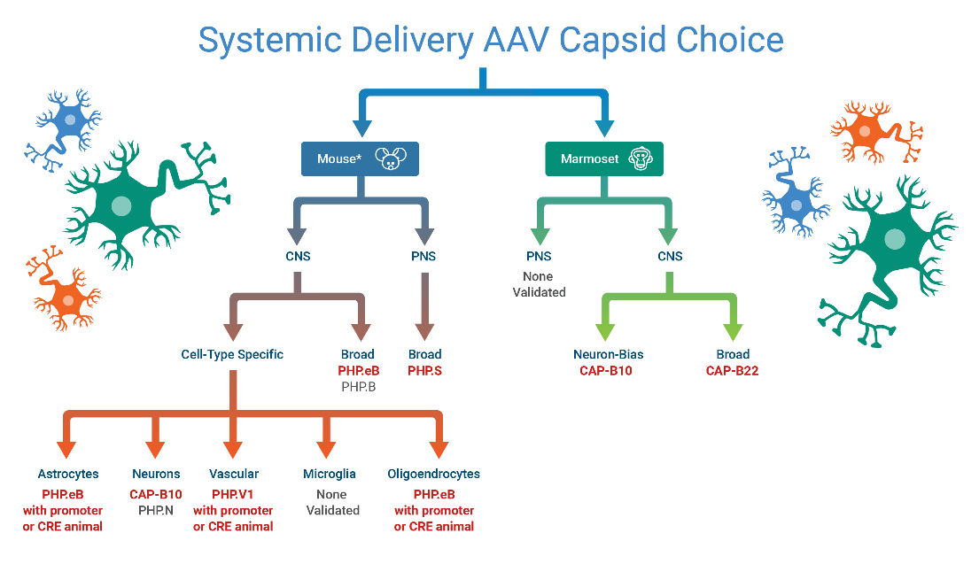作为病毒服务的一部分,Addgene正在生产来自Viviana Gradinaru实验室和 Caltech CLOVER Centerd的PHP.eB, PHP.S, and PHP.V1血清型的即用型病毒制剂。作为我们标准病毒生产的一部分,这些病毒载体经过质量控制,包括通过基于探针的微滴式数字PCR进行AAV滴度测定、体外和(如果可能)体内测试,以及最终病毒载体制剂的全测序。